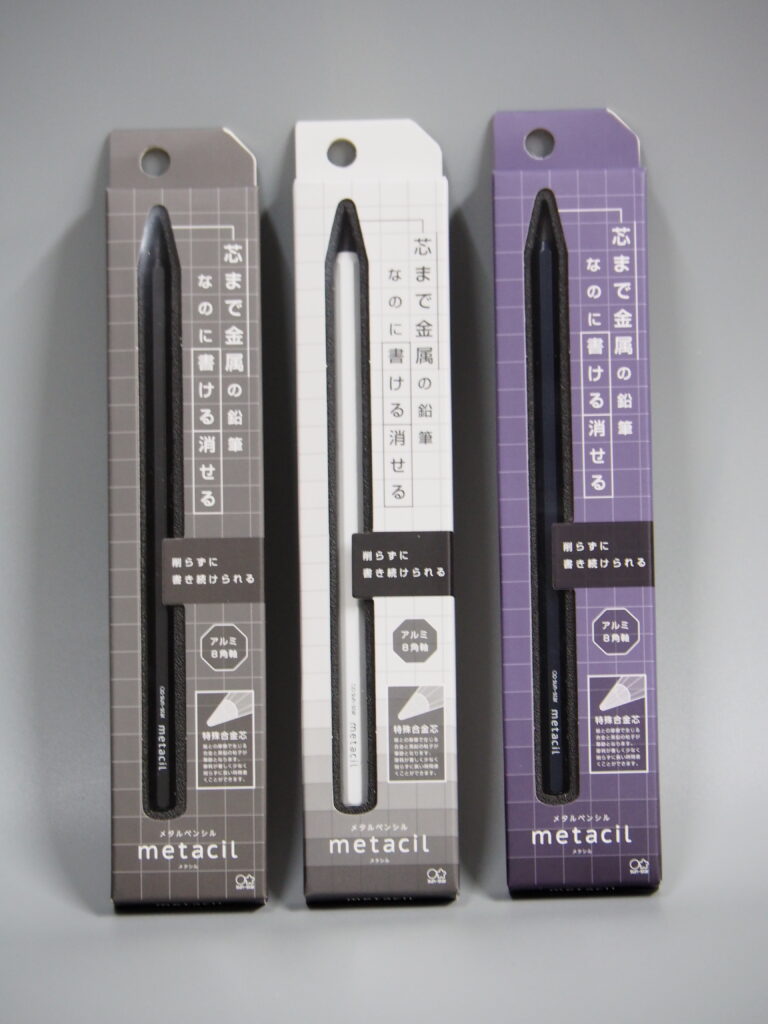 メタルペンシル(金属鉛筆)は、芯が黒鉛を含んだ特殊合金で作られており、筆記時に紙との摩擦で生じる黒鉛と合金の粒子が紙に付着することで筆跡となる筆記具です。