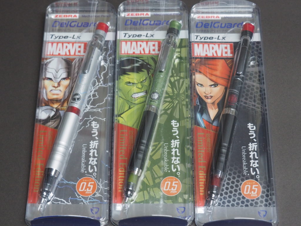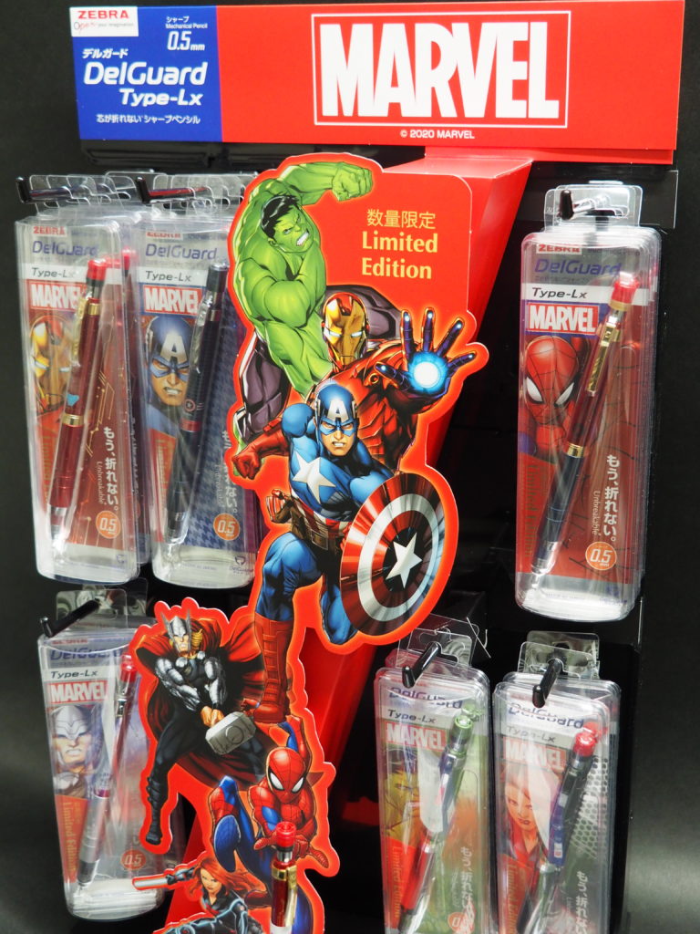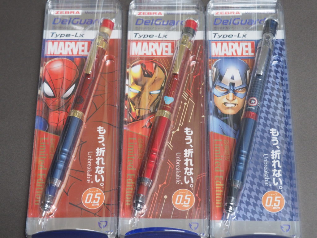 ゼブラさんから、芯が折れないシャープペンシル「デルガード」のマーベルデザイン第2弾が入荷しました。