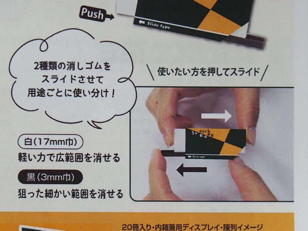 「スライド・消しゴム」は2種類の消しゴムをスライドさせて、