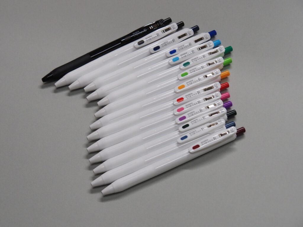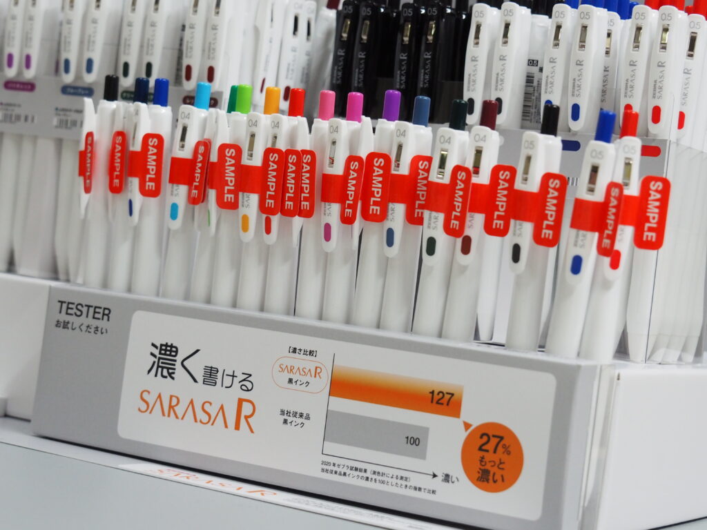もともと「サラサ」は、さらさらとした軽い書き心地と、濃くあざやかな発色が特長で2000年の発売以降、ゼブラさんの大人気の筆記具です。また、インクが無くなる最後まで書ける品質を追求したジェルボールペンです。今回発売の「サラサR」は従来の「サラサ」の濃くあざやかな発色を、更にグレードアップされた商品です。