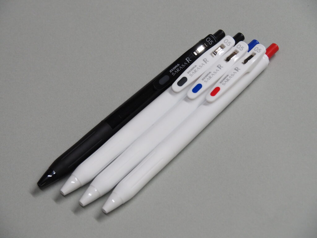 ノートに筆記する時など普段使いに関しては「サラサR」がインクが濃く綺麗でおススメです。