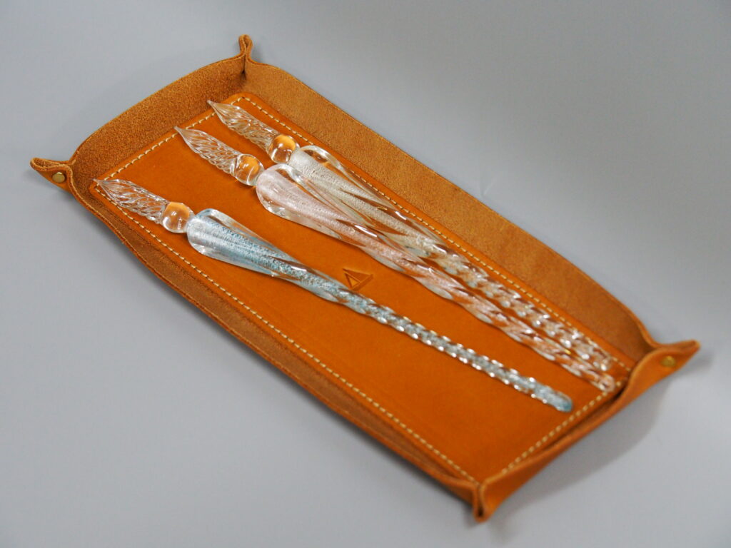 ガラスペンと一緒に、イタリアンオイルレザーを使用したアイテムもございます。