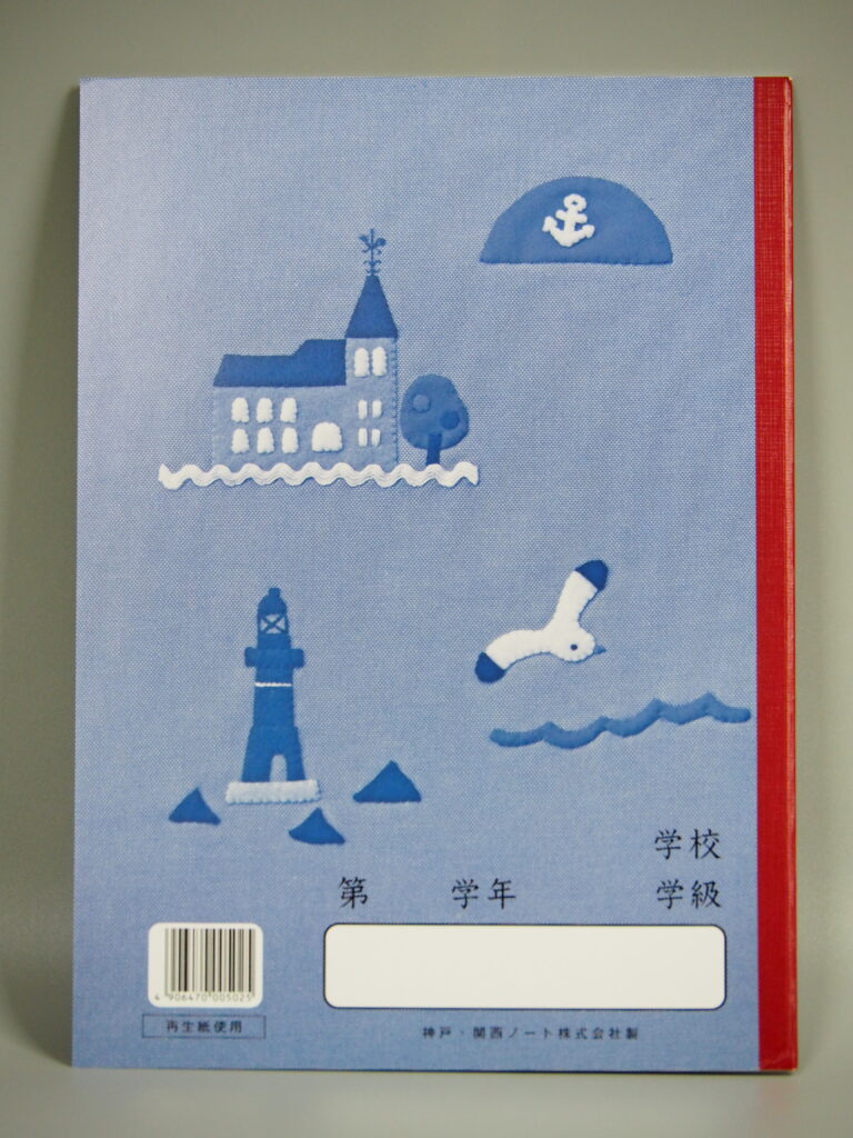 「神戸ノート」は関西ノート株式会社さんが、戦後間もない頃、これからの世代を担う子供たちに良質な文房具を低価格で提供しようと製作を始めたノートです。神戸の街並みが印刷された50年以上変わらぬデザインで、今も神戸市の多くの小学生に使われております。