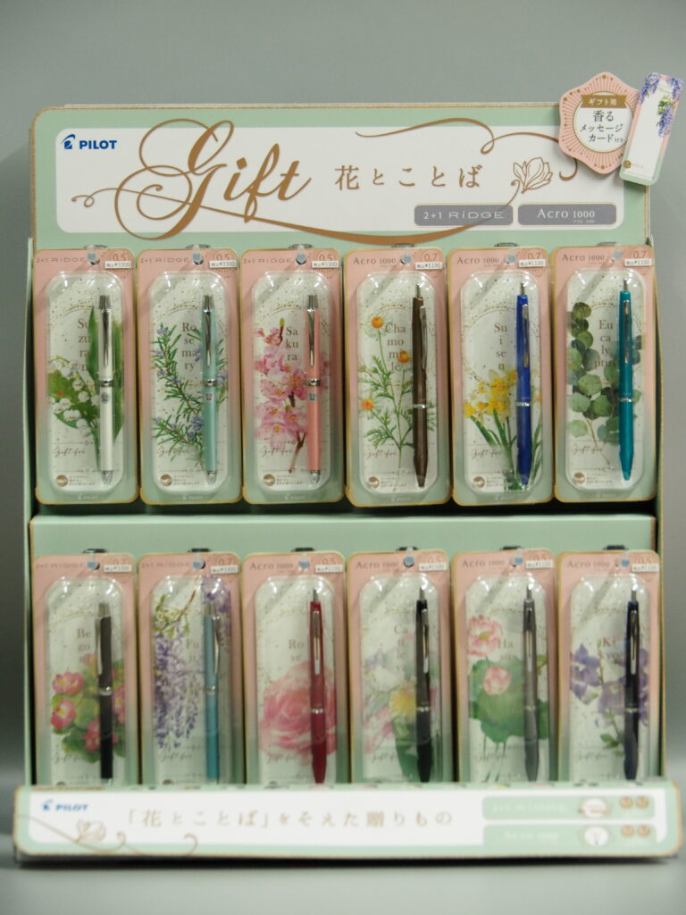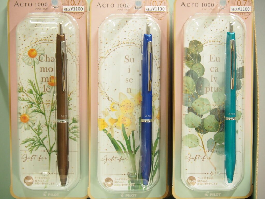 PILOTさんから香り付カードが同梱された単色ボールペン「Acro 1000」と、