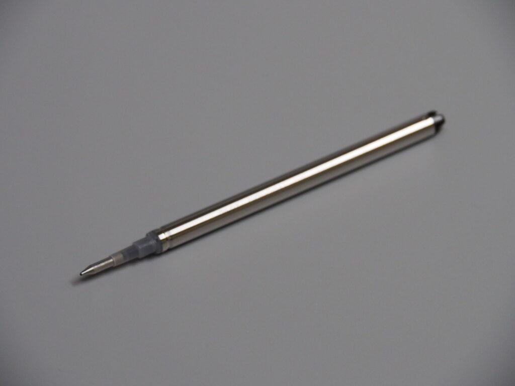 リフィル(替芯)を従来の樹脂パイプから金属パイプに変更しパイプ厚を薄くすることにより、インク容量が70%増えています。