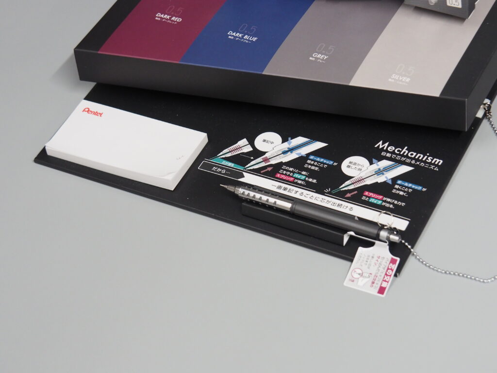 ノック1回でずっと書き続けられる「自動芯出し機構」と、ペン先のパイプで芯を守って書く「オレンズシステム」、しっかり握れる「デュアルグリップ」を搭載し、これまで以上に集中力が途切れず思考し続けられる「オレンズ」の新モデルです。